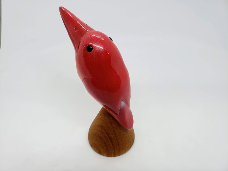 赤い色が奇麗な鳥の赤翡翠(アカショウビン)です。キョロロと鳴きます。渡り鳥で、夏頃に日本にやってくるそうです
