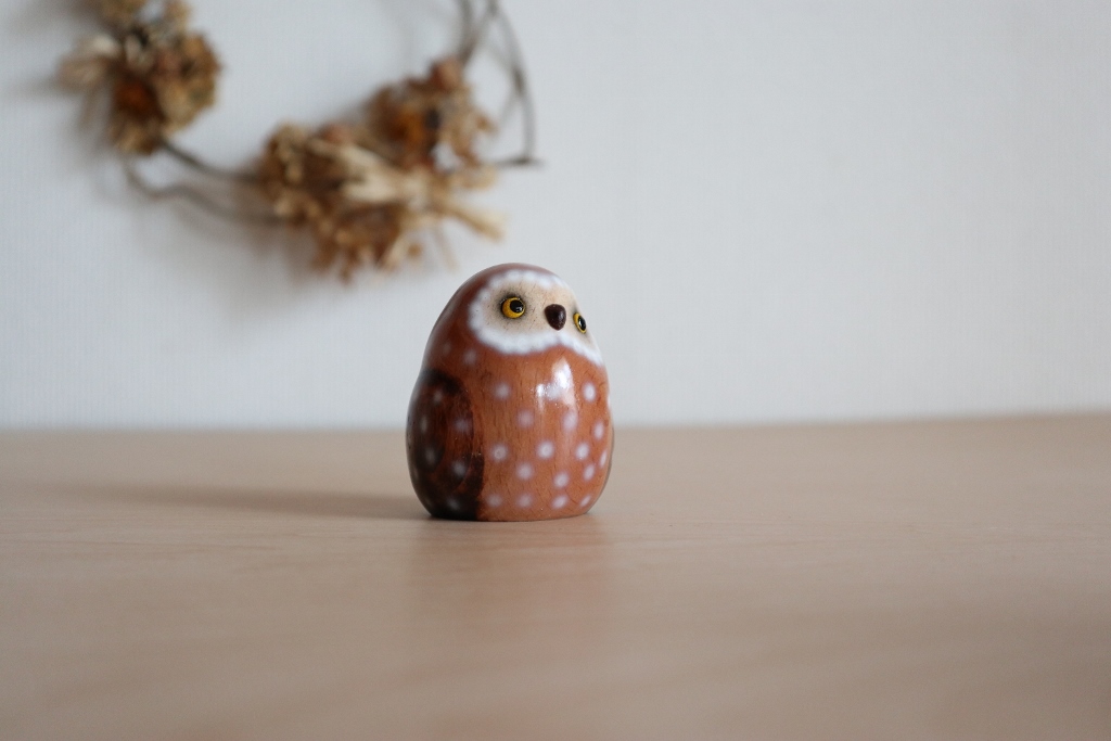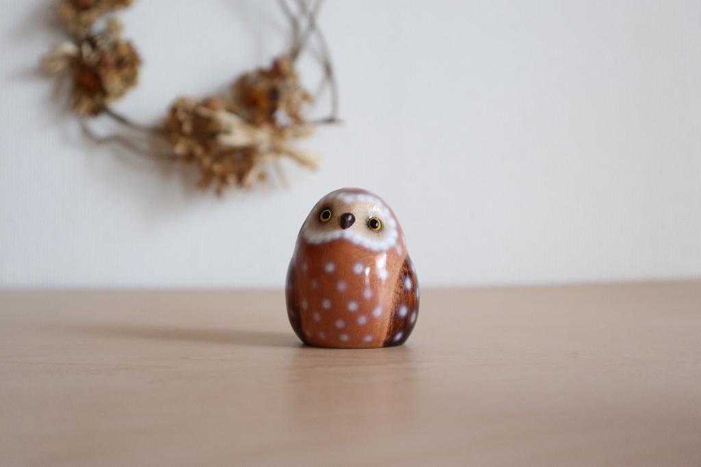 ※今回仕上がりは1枚目のニレ材のフクロウになります。