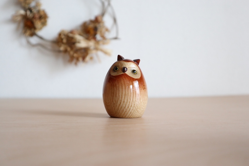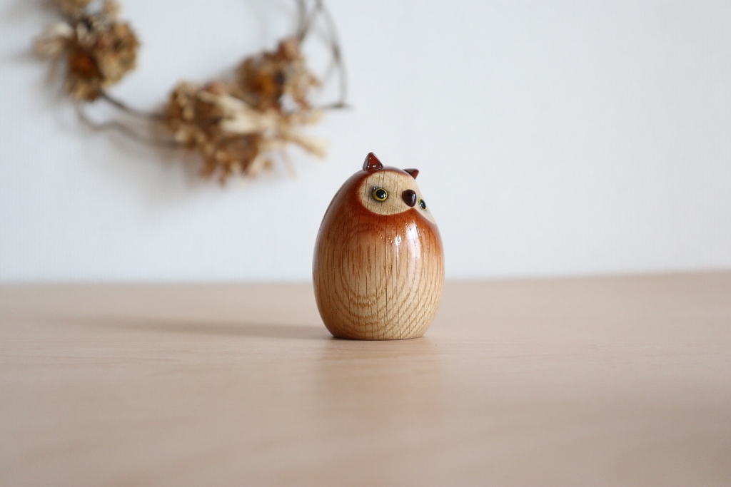 森の大木のうろの中にひっそりとしているミミズクです。フクロウの仲間ですが、出っ張った耳があるのでミミズクといいます。