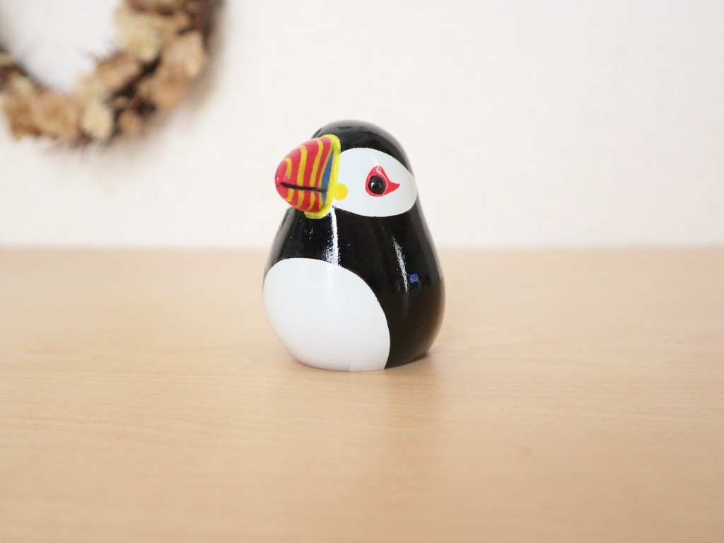 ニシツノメドリ 通称パフィンと呼ばれペンギンのような姿と愛嬌のある顔の模様でヨーロッパ北部、アイスランドなどで大変好まれています。