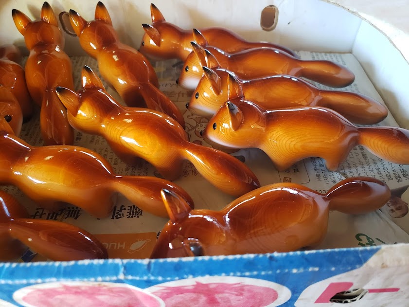 ひょっこり現れたキツネ…子ギツネでしょうか。 そんな空想が広がりそうなキツネさんが仕上がりました。 耳以外の頭から尻尾の先までが一体になっていてなめらかに丁寧に時間をかけて磨き上げました。 サイズ 17,5×7×5センチ 素材 マツ ラミン
